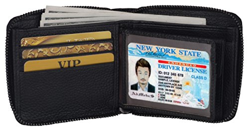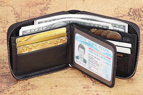 -. Title : Wallet for Men-RFID Blocking Bifold Wallet Zipper Leather Wallet Card Holder