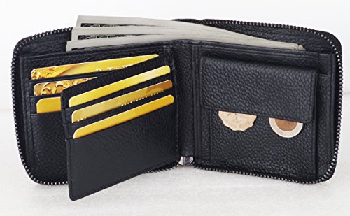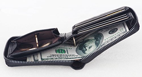 -. Feature : GENUINE LEATHER:High quality cow leather,have natural special scratches,as time goes on,it will be more bright,and better touch feeling.Creative gift box design,funny for self-using or gift to others / DOUBLE SECURITY PROTECTION: Our wallets are equipped with advanced RFID SECURE Technology protect your valuable information.The zipper design protect your P.R.Ivacy and prevent the dust / LARGE CAPACITY:4.7" x 3.7" x 0.8" inches,include 8 card slots,1 ID window,1 zipper coin pocket, 1 SD Card Hodler,1 Micro SD Card Hodler,1 outside card slots / MULTI FUNCTION:Organizer for cash/coin/ID cards/credit cards/SD cards/receipts etc,it's easy to carry all your important cards, meet all your daily needs / 100% MONEY BACK GUARANTEE -satisfaction guarantee, if you're not satisfied with our product, we will provide you with a refund or a free replacement