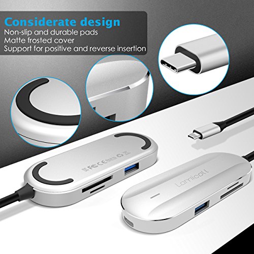 Lamicall USB C Hub EXQUISITE DESIGN: Made of silver aluminum alloy, double oxidation and polishing, it bring you with comfortable and smooth hand feeling.