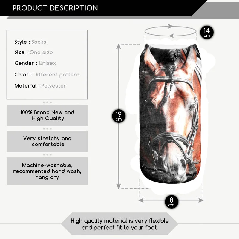 Model Number:QTA035 Ankle Socks horse socks casual socks 3d print socks