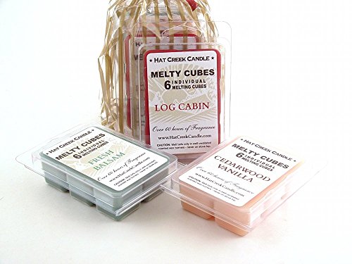 Cabin Retreat 3pk Melty Cube Scented Wax Melts: Fresh Balsam (#1 Seller for 13 years -evergreen), Cedarwood Vanilla, Log Cabin (blend of fresh evergreens, pinecone and cinnamon). 3.2 oz each