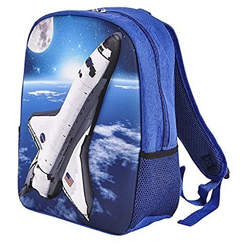 -. Feature : 1 Space Shuttle 3D Eva molded Backpack / Double stitched adjustable padded shoulder straps / Double zipper closure / Mesh side pockets / Measuring 14.5" H X 12" W X 4.5" D