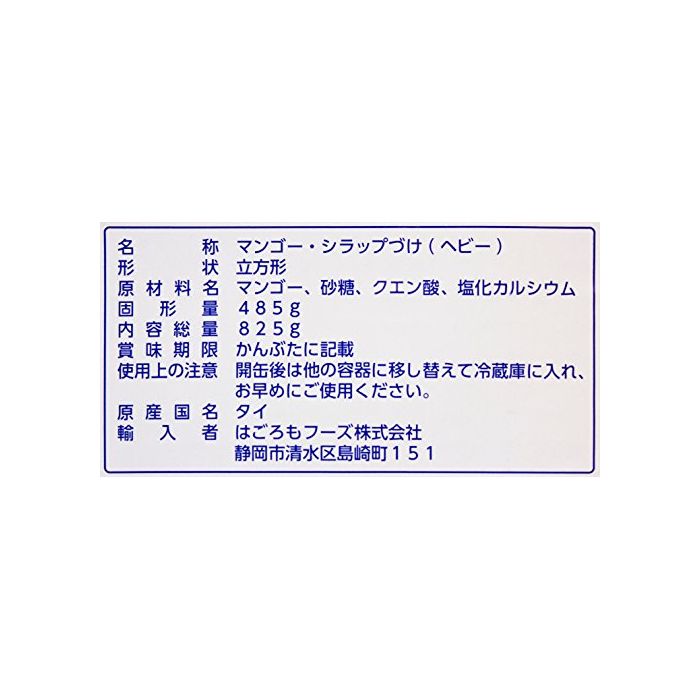 원본상품명: はごろも マンゴ?ダイスカット タイ産 825g (5399)