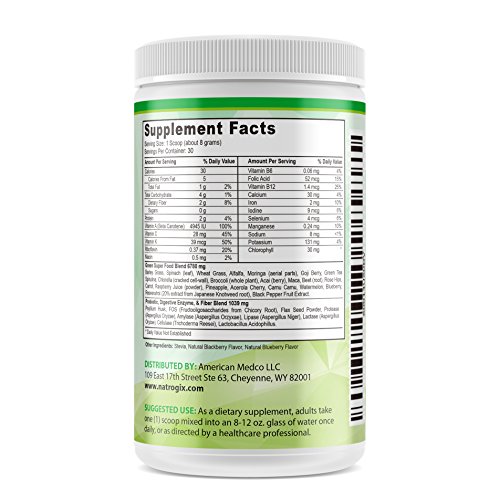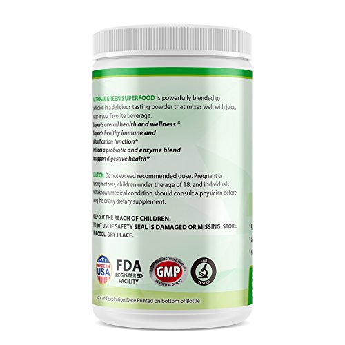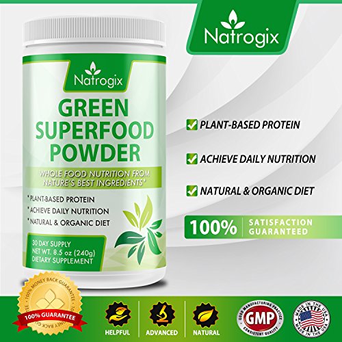 -. Feature : SUPPORTS DIGESTIVE AND IMMUNE HEALTH - Natrogix Green Superfood Powder combines a perfect blend of healthy enzymes, antioxidants, vitamins, minerals and probiotics to help enhance your digestive process from start to finish, and protect your immune system with antioxidant-rich fruits and herbs. / 100% PURE NATURAL FORMULA - We only use an all-natural combination of whole leaf greens, fruits and vegetables when crafted our Green Super Food. Our powerful formula is rich in nourishing vitamins and minerals, so you can not only rid yourself of harmful toxins, but also increase your metabolism and natural energy. / VEGAN FRIENDLY AND DELICIOUS TASTE - Made with gluten free raw foods that naturally energize and detoxify the body, this is the one supplement that's safe and good for people of all dietary needs. Mix Natrogix Green Super Food into smoothies, food, water, or juice and you'll find the taste to be as delicious as it is healthy. / THIRD PARTY LAB TESTED - All of our Natrogix supplements has been tested by third part lab and are manufactured in the USA. We make sure that only the purest extracts and ingredients are used and have a GMP certified facility that strictly follows FDA guidelines. / AMAZON 100% REFUND GUARANTEE - All of our Natrogix items are fulfilled by Amazon, buy it without any risks. You can get the full refund in 60 days, that is to say, a empty bottle is also returnable. No risk order from us.