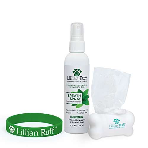 -. Title : Dog Breath Freshener Spray by Lillian Ruff - Spearmint Flavor- Fight Bad Breath, Dental Plaque and Tartar - Boost Immune System (4 oz.)