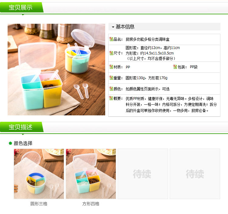 厨房多功能多格分类调味盒调料盒 分格式方形圆形调味罐