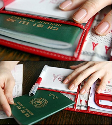 -. Feature : Passport and ID Card Holder. / 1 passport pocket, 3 card slots and free note pad. / Made of high quality Synthetic Leather. / Includes a pen holder. / Small and compact.