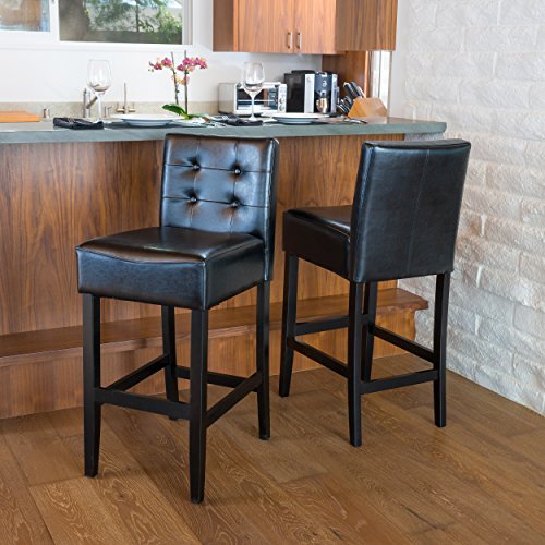 -. Binding : Home -. Brand : Great Deal Furniture -. Color : Black -. EAN : 0637162138366 -. Feature : Constructed from beautiful smooth bonded leather upholstery / Contemporary style will add elegance to your bar, kitchen or dining room / Features supportive tufted backrest for classic touch / Neutral color will match any color scheme / Dimensions: 23.50"D x 17.75"W x 41.75"H, Seat Height: 29.5" -. Label : Great Deal Furniture -. Manufacturer : Great Deal Furniture -. ProductGroup : Furniture -. ProductTypeName : HOME_FURNITURE_AND_DECOR -. Publisher : Great Deal Furniture -. Studio : Great Deal Furniture -. Title : Gregory Black Tufted Leather Back Bar Stool (Set of 2) -. UPC : 637162138366