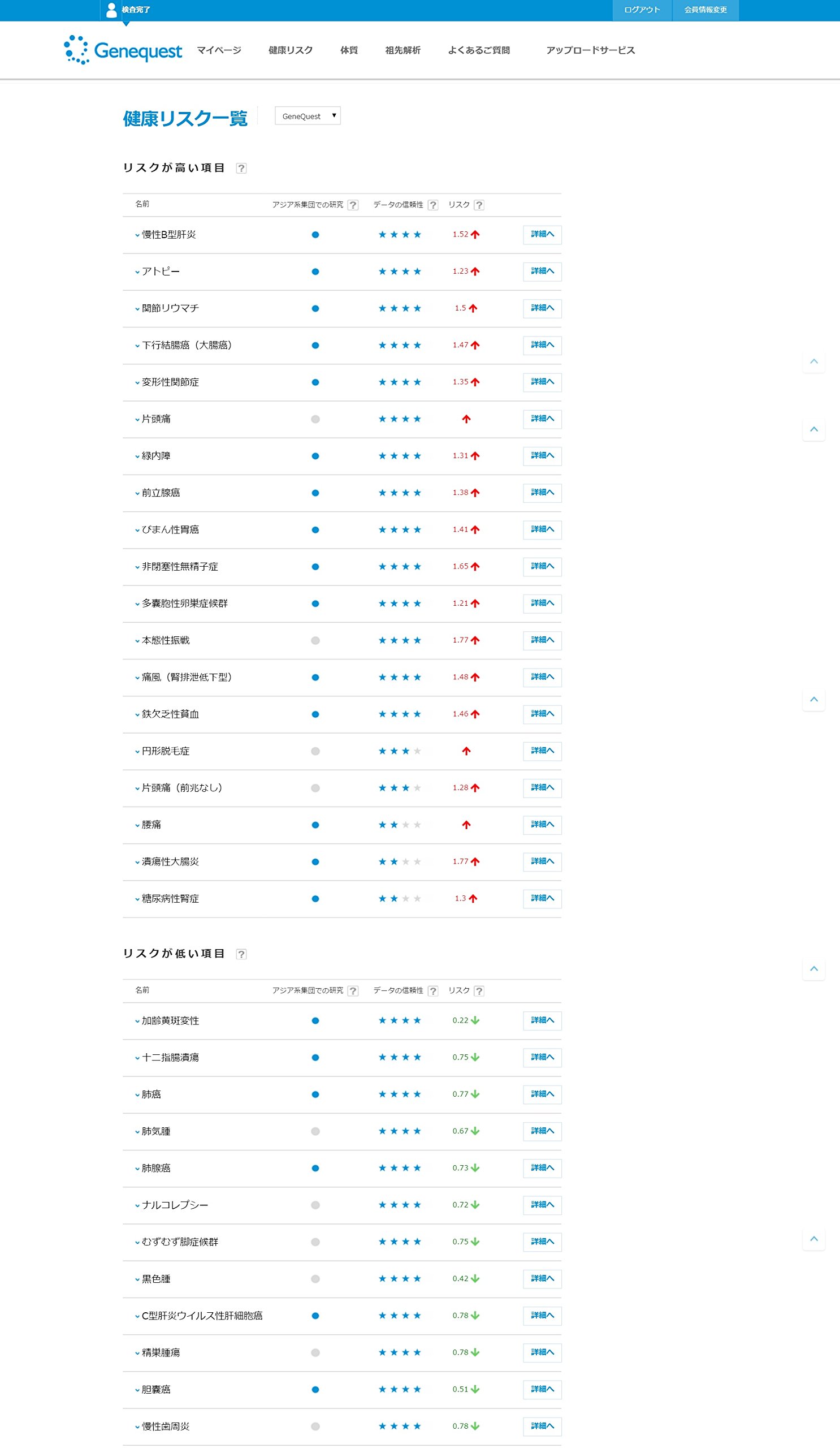 5.4 - After six weeks, when the analysis end mail arrives, you can check the analysis result on the site of GeneQuest.