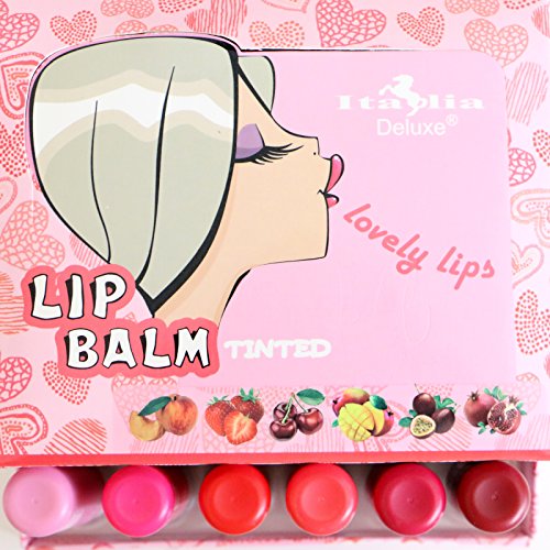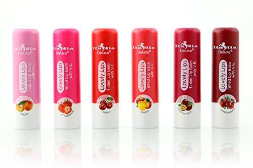 6pc Italia Deluxe Tinted Lip Balm With Vitamin E Full Set of 6 Flavors