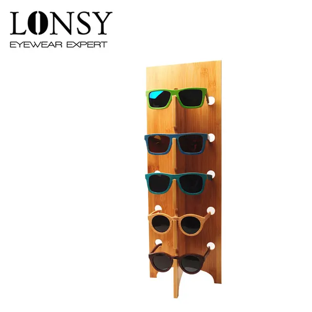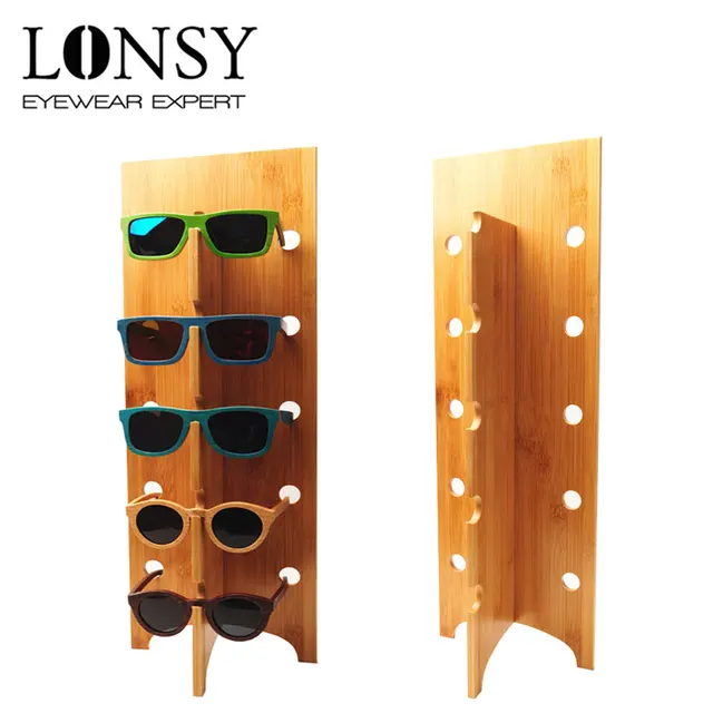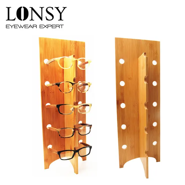 LONSY 수제 대나무 안경 디스플레이 스탠드 이동식 패션 선글라스 랙 5 안경 디스플레이 선반 나무 도매
