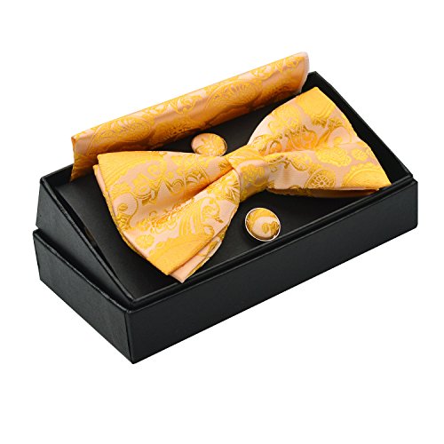 -. Title : Alizeal Men's Paisley Bow Tie& Hanky& Cufflinks Set