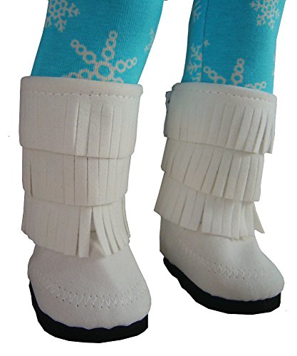 -. Title : White Fringe Moccasin Boots for 18" Dolls such as American Girl