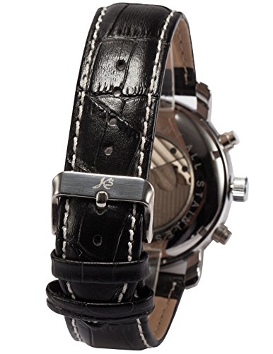- Gehäuse und Armband aus hochwertigem Edelstahl und Leder