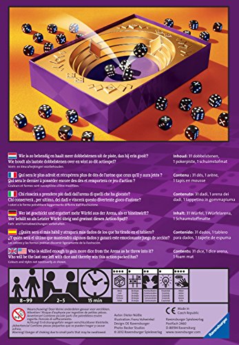 -. Feature : 2-5 Players / Playing Time: 15 minutes / Contents: 31 Dice, 1 Dice Arena, 1 Foam Mat