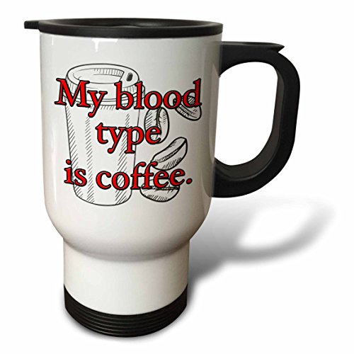3dRose tm_202823_1 My Blood Type is Coffee Red Stainless Steel Travel Mug, 14 oz, White