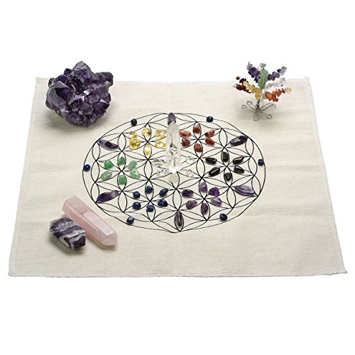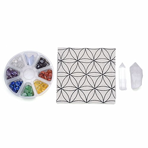 JOVIVI Chakra Crystal Healing Grids Kit / Includes Grids Altar Cloth, 7 Chakra Assorted Chips Stones, Clear Crystal Quartz Point