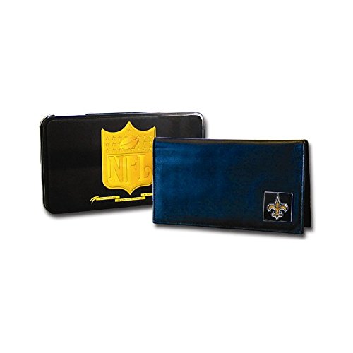 Product DescriptionNFL Saints Deluxe CheckbookLeatherEmbossedNon MetalLength of Item: 4.25 in Width of Item: 7.5 in Product Type: Gift Height: 1 in 0