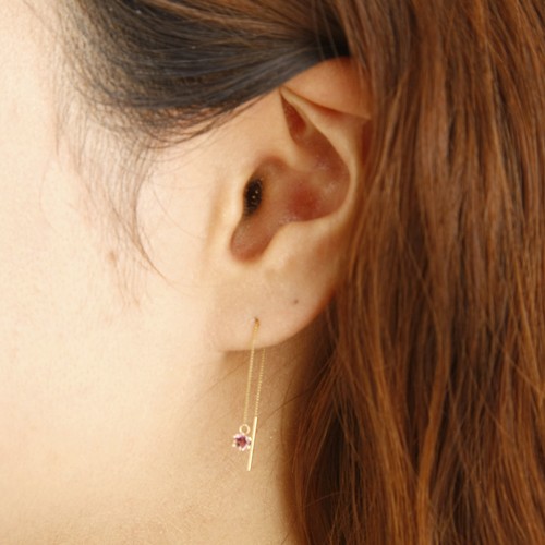 【商品名】K18 バースデイジュエリーチェーンピアス ルビー(7月)