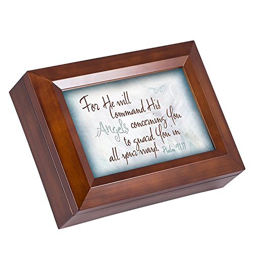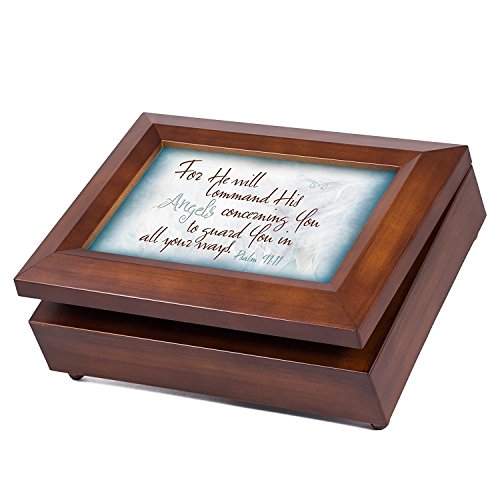 Angels Guard You Psalm 91:11 Wood Finish Jewelry Music Box Plays You are My Sunshine