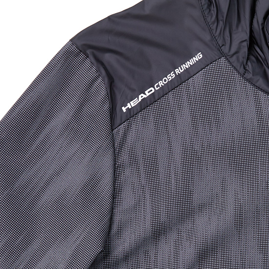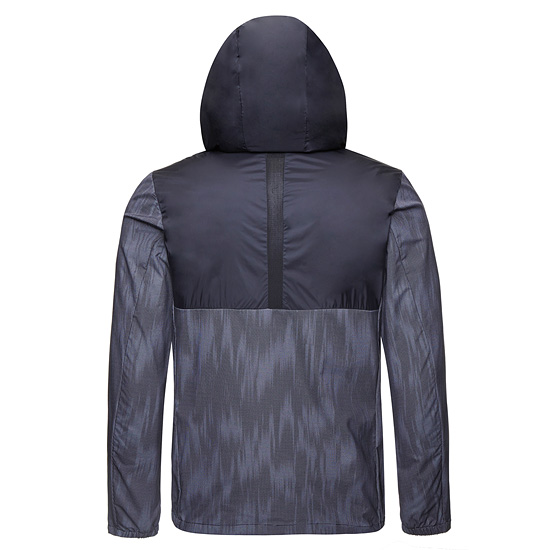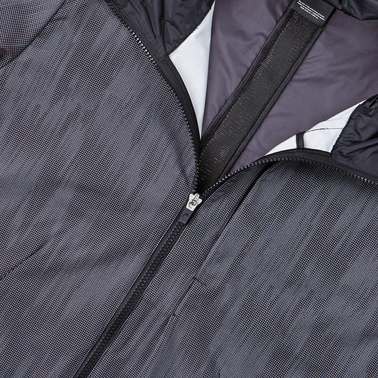 - 써클 패턴과 솔리드 배색의 남성 러닝 M-STRETCH 점퍼.