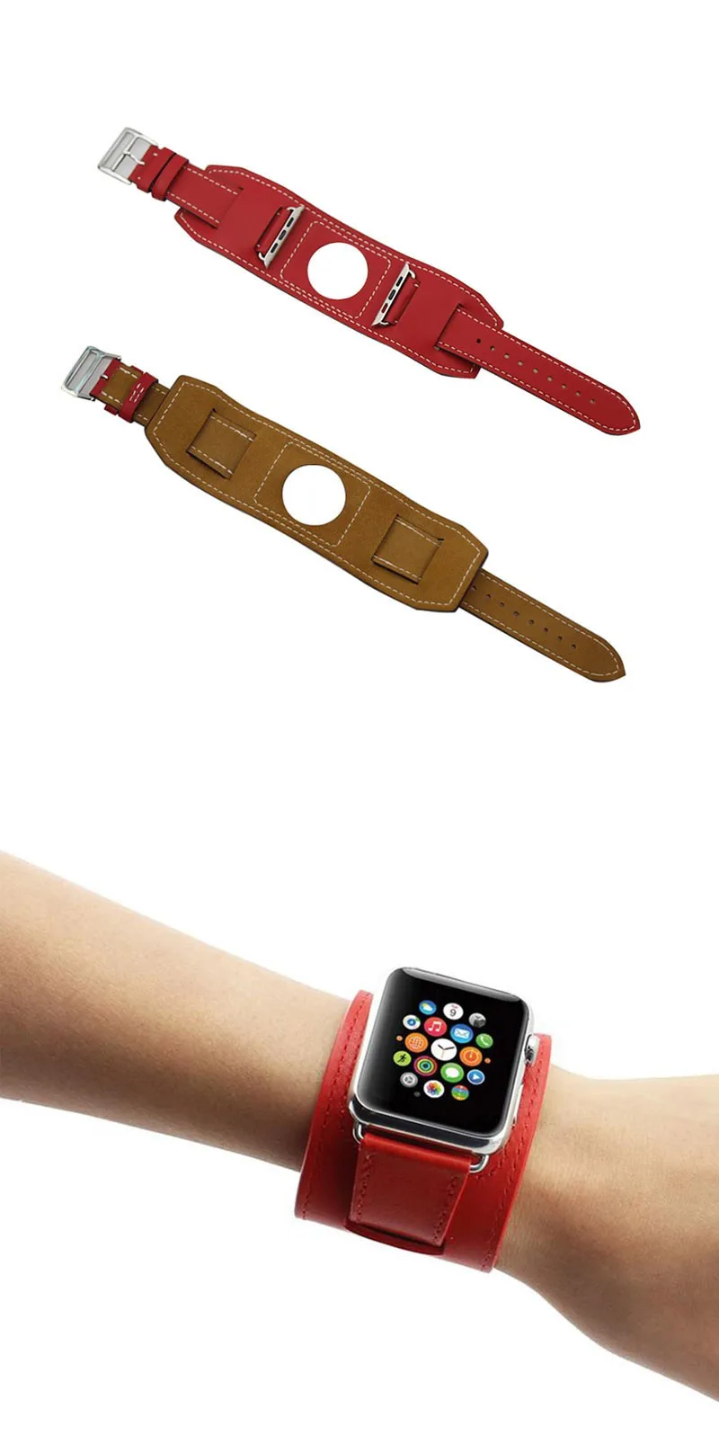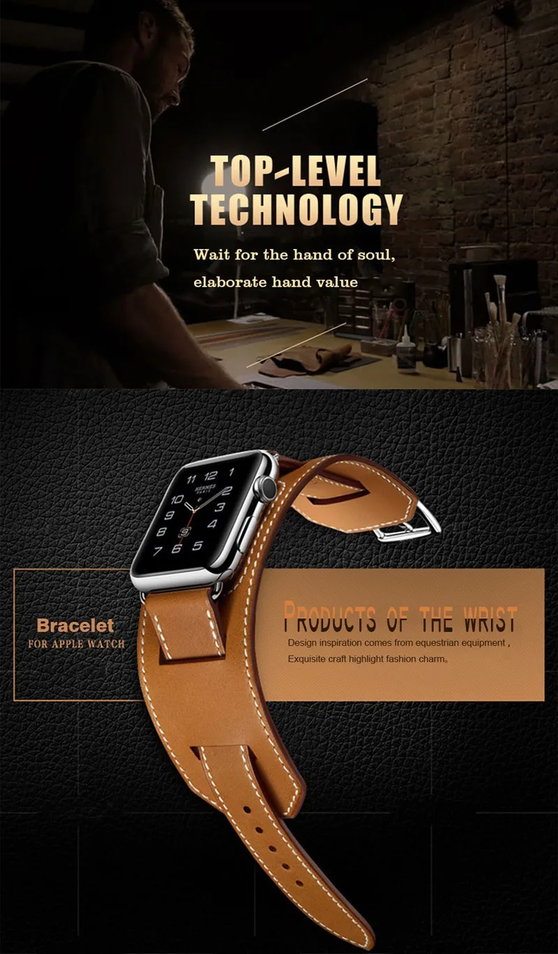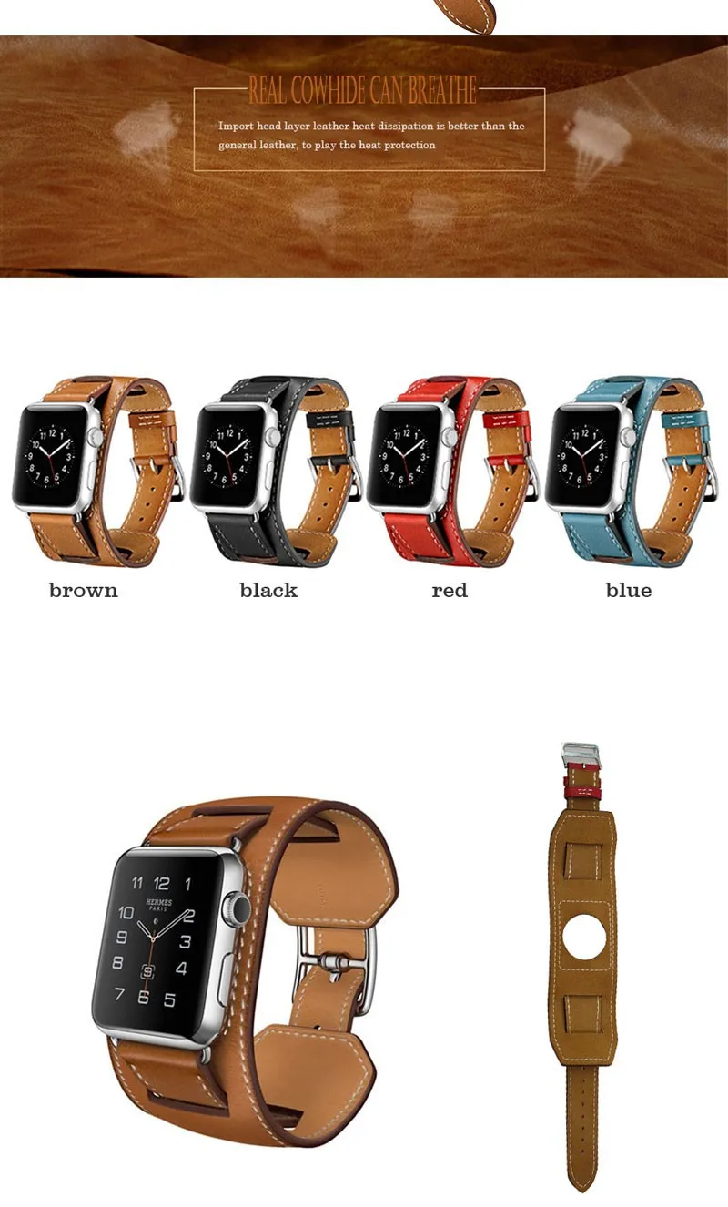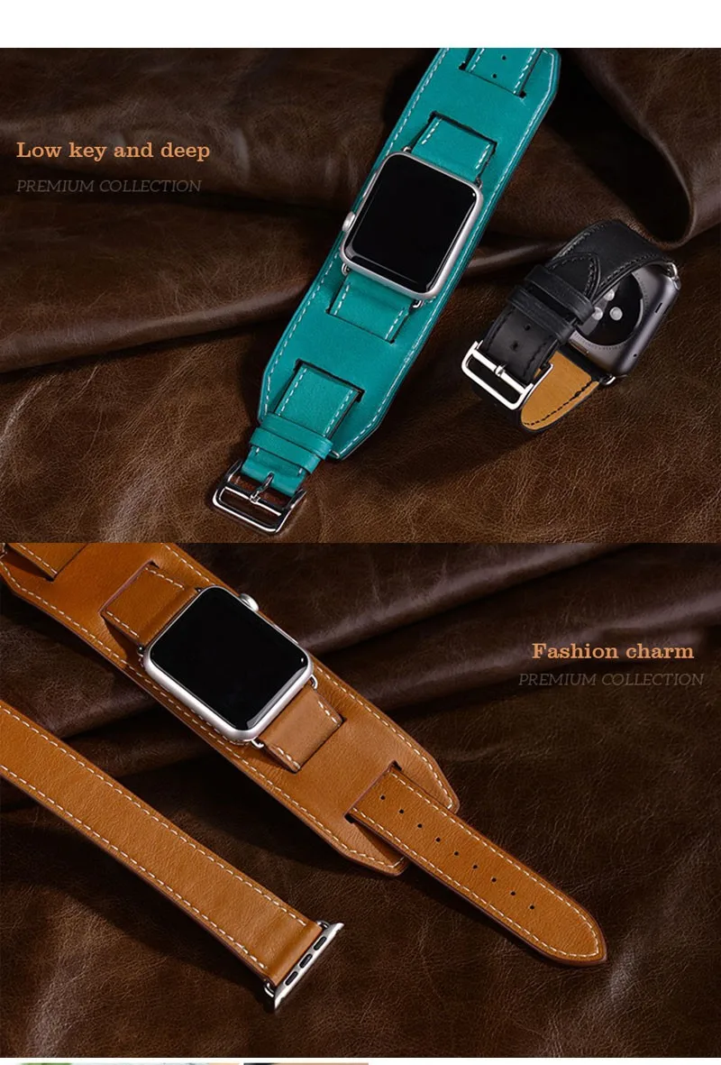 패키지 포함: 1x 커프 정품 가죽 밴드 팔찌 손목 애플 시계 42 미리메터/38 미리메터