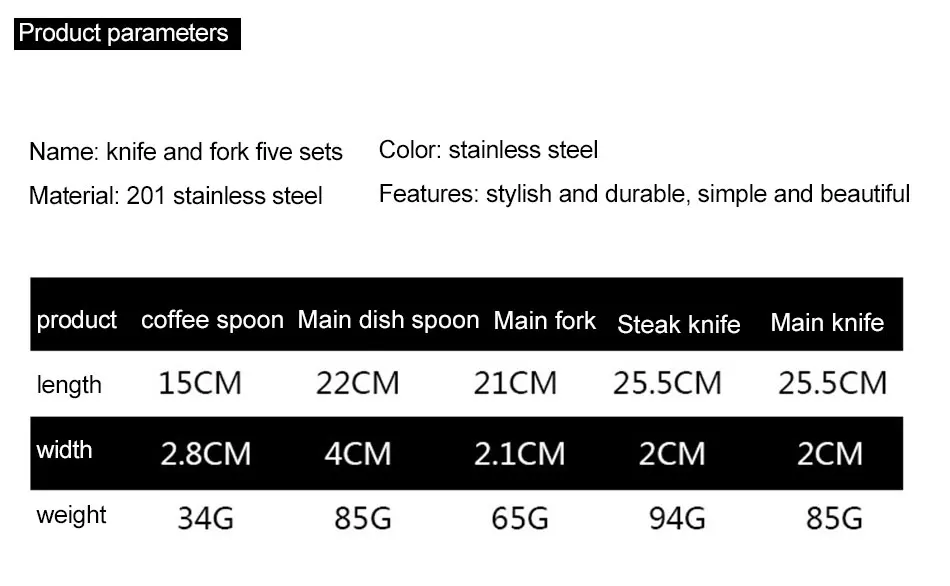 Feature 2:Cutlery Set 4 Pieces Knife Fork Set