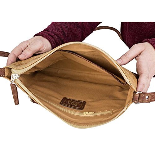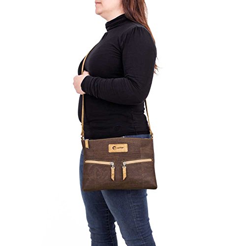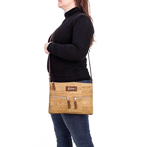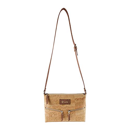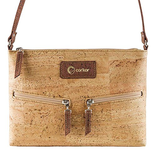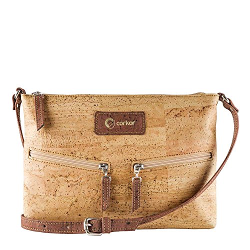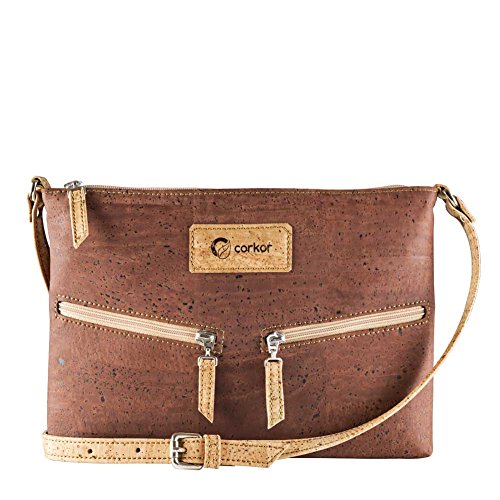 -. Brand : Corkor -. Color : Brown -. Department : womens -. Feature : VEGAN BAG - PETA VEGAN APPROVED - No animal products used - Cool gift for any vegan or vegetarian / SPACIOUS INTERIOR - SOFT COTTON LINNING - This travel cross-body bag for women has one back-wall with 2 slip pocket and one zipper pocket / DURABLE MATERIAL - Sturdy and protective exterior with two outside pockets / MADE FROM CORK - Sustainable alternative to animal leather - MADE BY PORTUGUESE ARTISANS IN PORTUGAL - Ensure only the best product quality, great manufacturing quality, sturdy, durable natural material also long lasting bag. / ADJUSTABLE STRAP - Bag dimensions: 11.4 in (L) X 8.3 in (W) X 0.8 in (H). Weight: 8 ounces -. Model : CK159 -. ProductGroup : Shoes -. ProductTypeName : HANDBAG -. Title : Travel Cross-Body Bag for Women - Front Pockets - Vegan Cork from Corkor