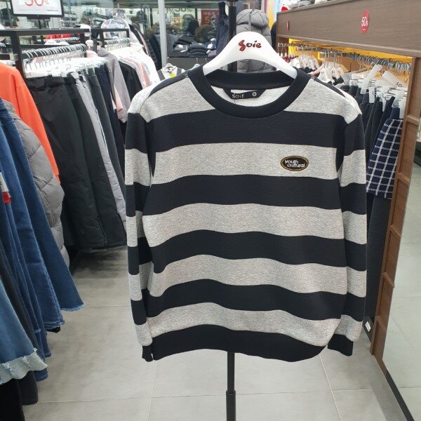 [18년 겨울 소이] (남) 블랙 스트라이프 맨투맨 티