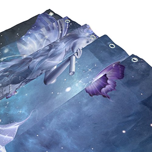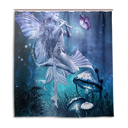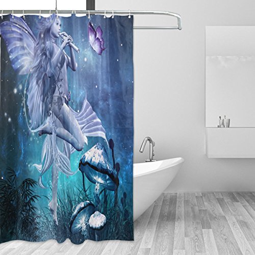 JSTEL Decor Shower Curtain Fairy Magic Butterfly Mushrooms Pattern Print 100% Polyester Fabric 66 x 72 Inches for Home Bathroom Decorative Shower Bath Curtains with Plastic Hooks