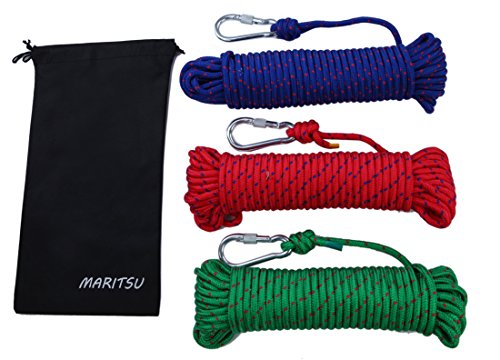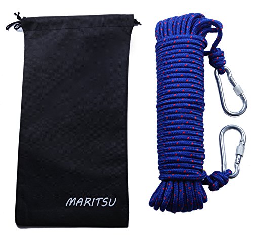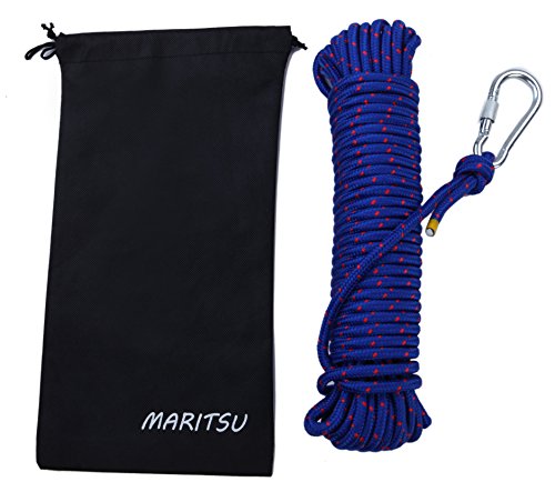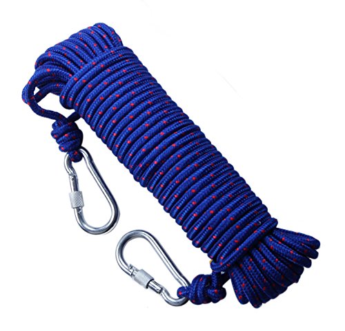 Utility Rope 3/8 inch 64Ft Outdoor Escape Rope, Camping Hiking Rope, Fire Rescue Parachute (Blue with 2 carabiners)