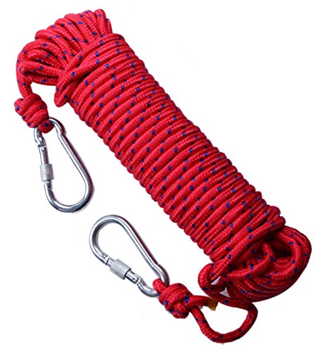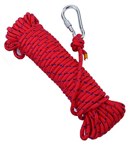 Utility Rope 3/8 inch 64Ft Outdoor Escape Rope, Camping Hiking Rope, Fire Rescue Parachute (Red with 2 carabiners)