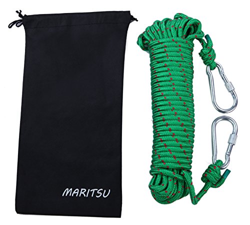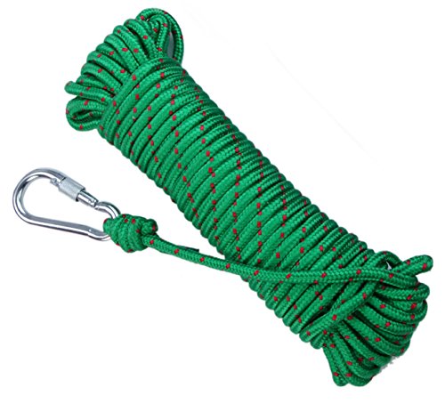 Utility Rope 3/8 inch 64Ft Outdoor Escape Rope, Camping Hiking Rope,Fire Rescue Parachute (Green with 2 carabiners)