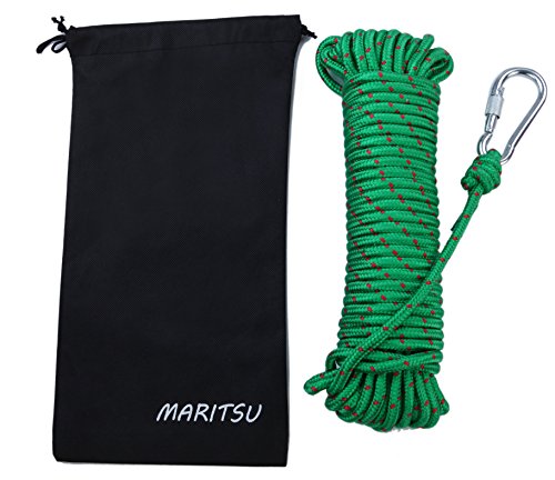 Utility Rope 3/8 inch 64Ft Outdoor Escape Rope Climbing Equipment , Camping Hiking Rope,Fire Rescue Parachute (Green with 1 carabiner)