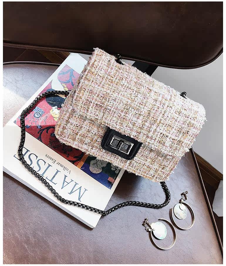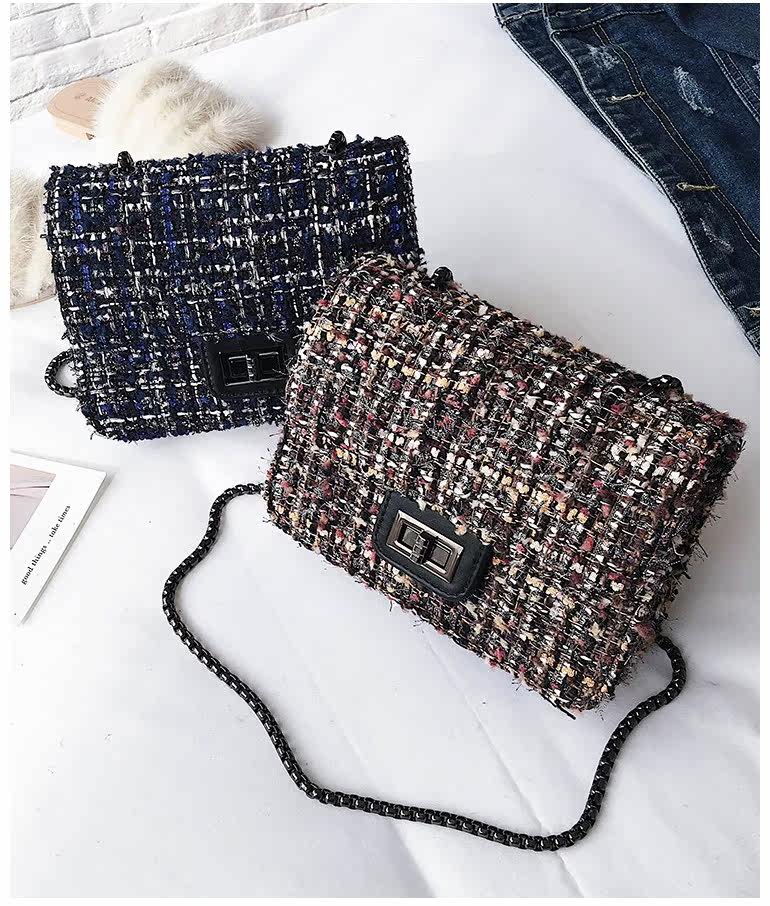 冬季毛呢小包包女新款潮单肩包韩版链条小方包时尚百搭斜挎包