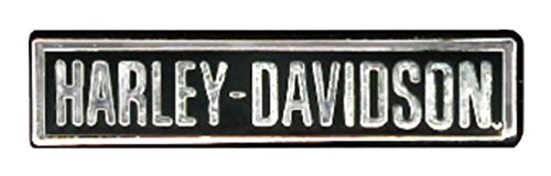 Product Description Harley-Davidson® Engraved H-D Pin, P883061. Classic engraved Harley-Davidson script. Polished silver with black enamel fill. Flat head pin backs. Size: 1' W x 0.25' H. P883061 0