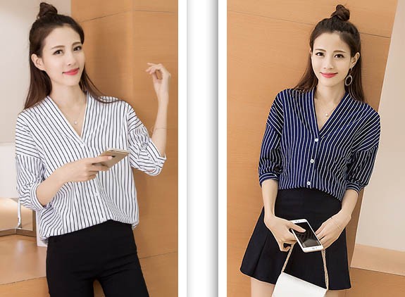 【入荷後営業日2,3日以内出荷予定 通関待ちや不良により出荷遅くなる場合はメールにてご連絡いたします。メール受信設定によっては正常に受信されない場合はございますので、 弊社からのメールを予め受信頂くようご設定くださいませ。】 トップス シャツブラウス ストライプ柄 カジュアル 大人可愛い レディス レディース 春 新作ストライプ柄Vネックシャツブラウス◆サイズ:S着丈55袖丈29胸囲90M着丈56袖丈30胸囲94L着丈57袖丈31胸囲98XL着丈58袖丈32胸囲102◆素材:コットン85%+ポリエステル15%