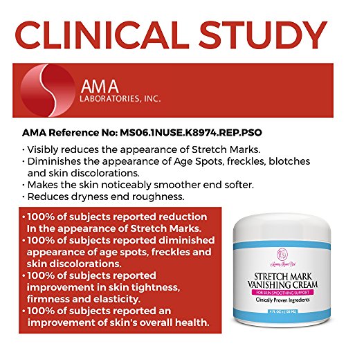 CLINICALLY PROVEN TO REDUCE STRETCH MARKS: 100% of Participants saw a visible reduction in the appearance of stretch marks, age spots, blotches, and skin discolorations (Request your free copy of the full clinical study results!)