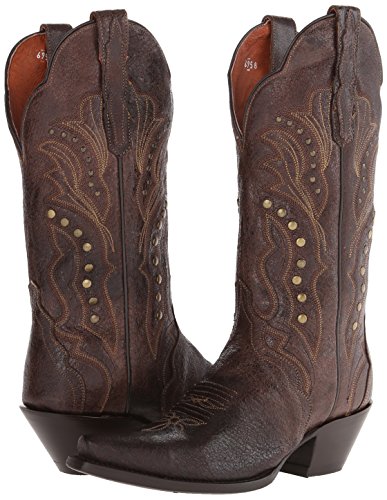 Product DescriptionBrown Crackle Leather, 12" Studded Shaft. Fully Leather Lined. Soft Strike Removable Orthotic Cushioned Footbed. Snip Toe, Leather Outsole. Medium Cowboy Heel.0