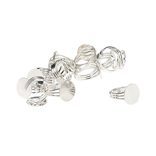 Silver Plated Adjustable Ring Blanks with 16 mm Glue on Pad - 12 Blank Rings
