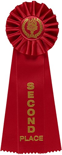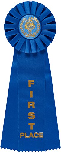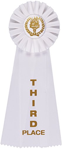 Set Includes 3 rosette victory award ribbons 1st, 2nd, and 3rd places with the appropriate colors of Blue red and White -3 pack.
