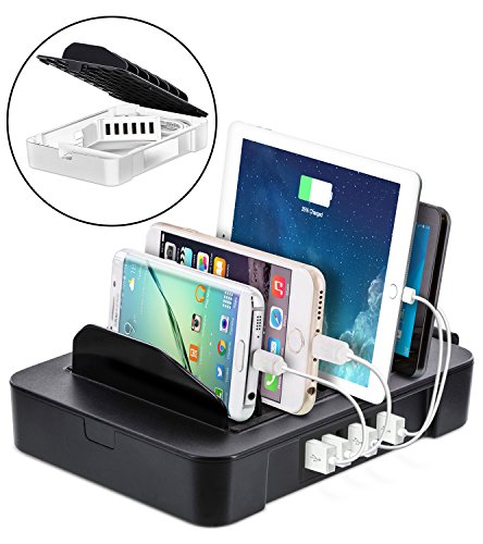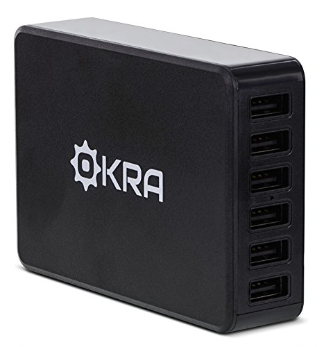 Okra 6-Port USB 2-in-1 Charging Station + Removable Hub Universal Desktop Tablet & Smartphone Multi-Device Hub Charging Dock for iPhone, iPad, Galaxy, Tablets (Black)