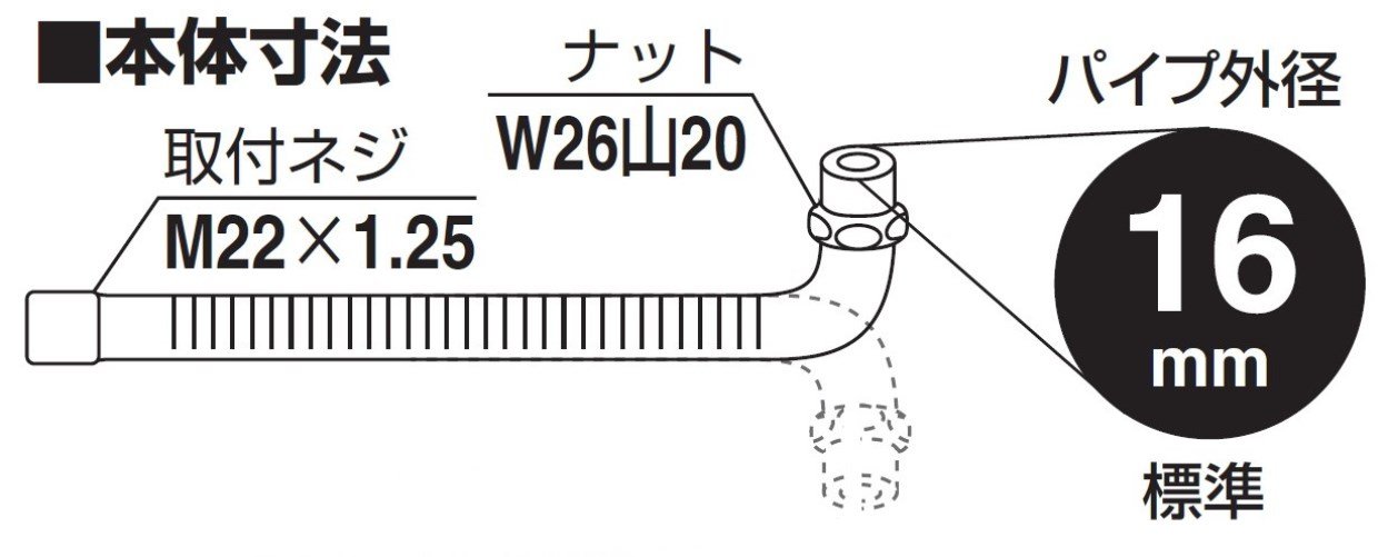 Standard type with pipe outer diameter of 16 mm (TOTO product part insertion type can not be installed).