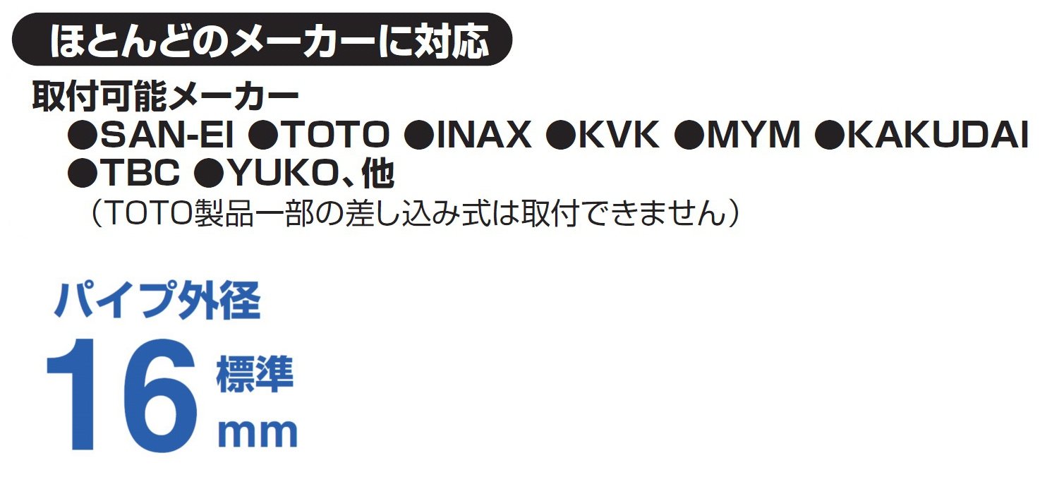 It corresponds to most manufacturers such as SAN-EI, TOTO, INAX, KVK, MYM, KAKUDAI, TBC, YUKO.