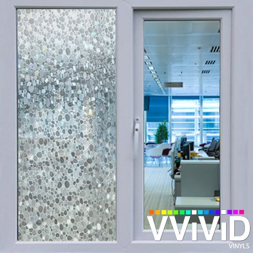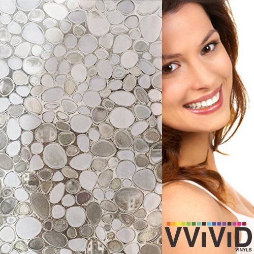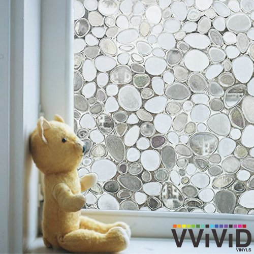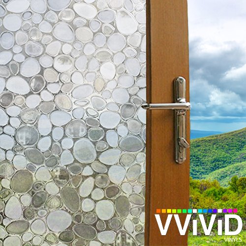 Pebble Cobbles Static Cling Stained Glass Decorative Privacy Frosted Window Film for Bathroom, Kitchen, Home, Office (17.75 inches x 78 inches)