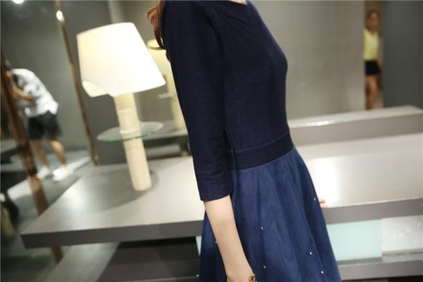 ★シルバービーズが可愛いストレッチの効いたデニム素材のドッキングワンピースです♪