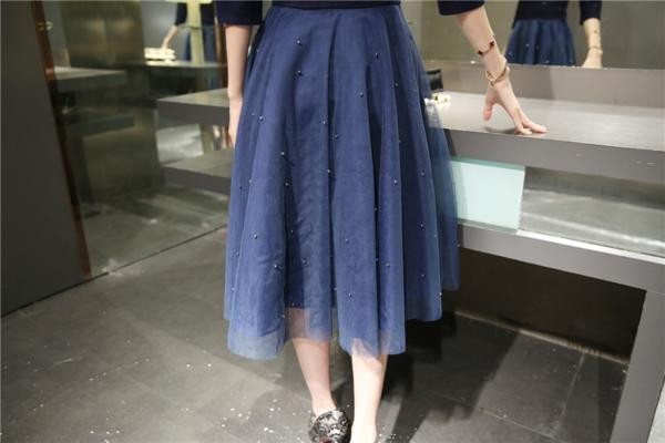 シルバービーズが可愛いミモレ丈 ドッキングワンピース チュールスカート