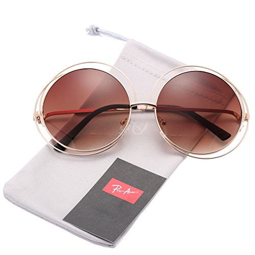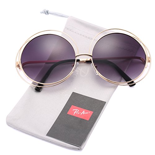 -. Brand : Pro Acme -. Department : womens -. Feature : PRODUCT DIMENSION - Lens width:66mm (2.59") | Lens height:70mm (2.76") | Bridge width:20mm (0.79") | Frame width:146mm (5.75") | Arm length:144mm (5.67") / UINQUE DESIGN - Designer Inspired frame. You will get lots of compliments on these stylish sunglasses. Silver mirrored lens is available. / UV400 PROTECTION - Lenses block 100% Harmful UVA & UVB Rays. / PREMIUM PACKAGE - Comes with Authentic Pro Acme Microfiber Pouch, Microfiber Cleaning Cloth, User Manual and Tag. / 30 DAYS MONEY BACK GUARANTEE - 100% Satisfaction Guaranteed. Please just let us know if you're not happy with your purchase within 30 days, and we'll take care of you. You have no risk to try. -. ProductGroup : Apparel -. ProductTypeName : EYEWEAR -. Title : Pro Acme Women’s Double Circle Metal Wire Frame Oversized Round Sunglasses