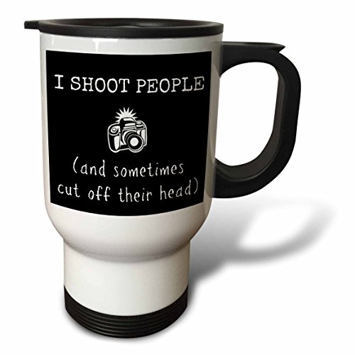 I shoot people and sometimes chop off heads picture of camera travel mug is a great way to take your favorite hot or cold drink along. With a tapered bottom this stylish 14oz mug fits in a standard cup holder and features an easy-grip handle with thumb rest, slide opening lid and slanted drinking surface. This travel mug is made of stainless steel. Not microwave safe, hand washing is recommended.Feature