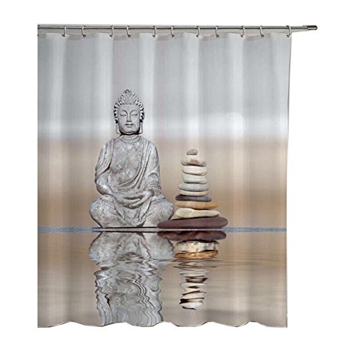 SZTARA Printed Bathroom Shower Curtain Home Decoration Waterproof Moldproof Solid Polyester Fabric Bath Curtains with Hooks Buddha